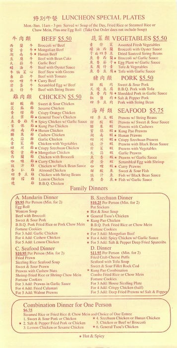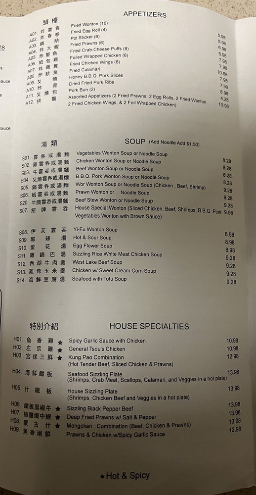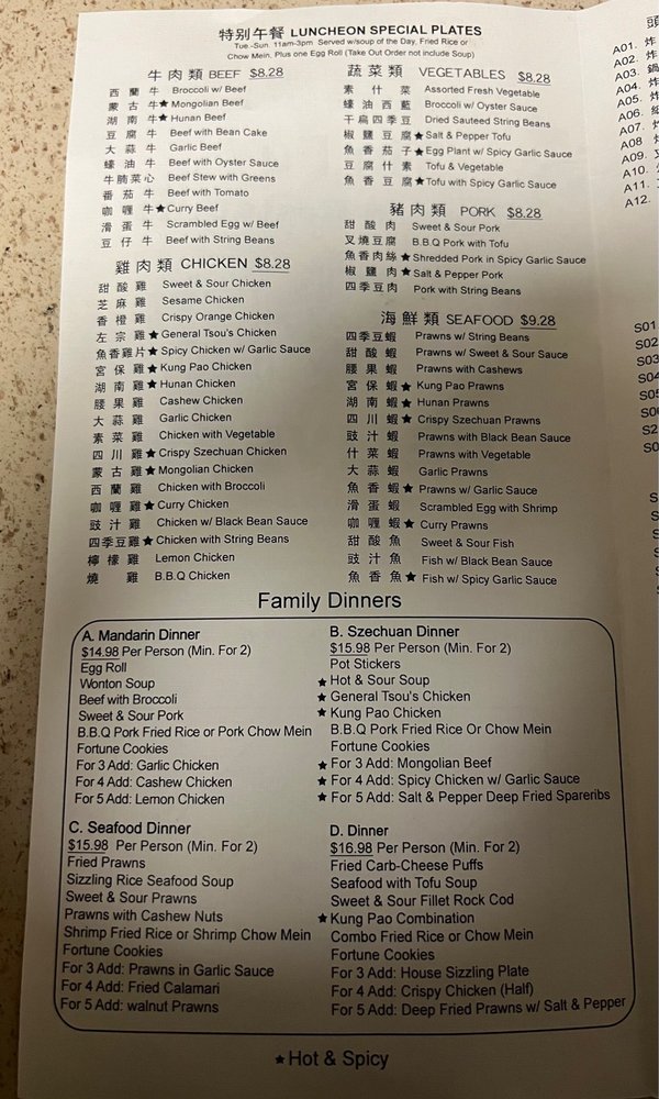 Introducing the menu at Tin Fu Restaurant in Hayward, CA, a Chinese eatery known for its delicious and affordable dishes. Customers rave about the generous portions and friendly service. Highlights include the saucy chicken chow mein, flavorful kung pao chicken, and comforting beef wonton soup. Vegetarians will appreciate the many options available. The menu also features a variety of tofu dishes and classic favorites like Mongolian beef. Prices are reasonable, making Tin Fu a great choice for a casual lunch or dinner. The restaurant offers delivery, takeout, and catering services, making it convenient for any occasion. With options for all dietary preferences and a warm atmosphere, Tin Fu Restaurant is a must-try for Chinese cuisine lovers in the area.